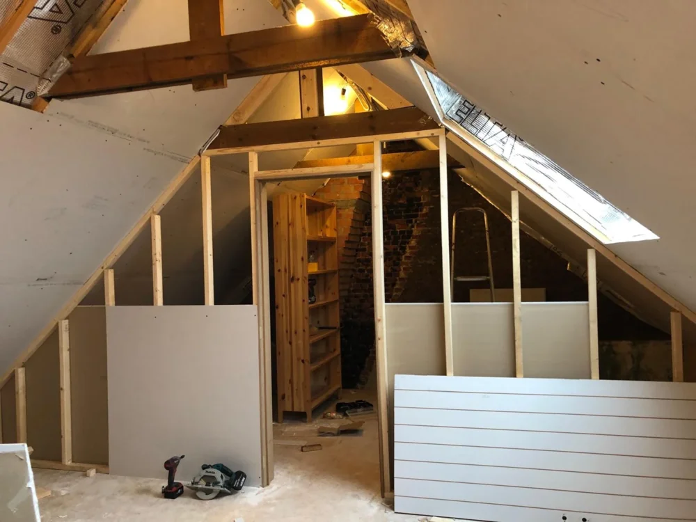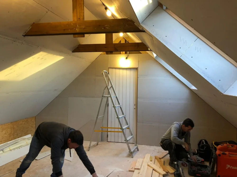 - Finition intérieure du grenier et des cadres pour un résultat propre et esthétique.